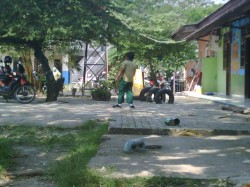 Tiga anak SD itu bermain dengan riang gembira di halaman sekolah. Usia mereka kurang lebih 10 tahunan. Mungkin masih duduk di kelas 3 atau 4. Salah seorang diantara mereka mendirikan sebuah kaleng dan menaruh satu kaleng lagi di atasnya. Saat ia menendang kaleng-kaleng itu, permainan pun dimulai.